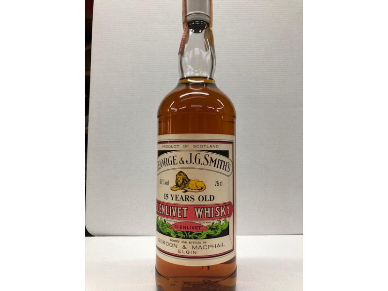 Category Single Malt Distillery Glenlivet Bottler Gordon & MacPhail (GM) Bottling serie George & J.G. Smith's Stated Age 15 years old Strength 100 (proof) Size 750 ml Label 100° Proof, 57% vol. | 75 cl<br>CL.75 57% VOL